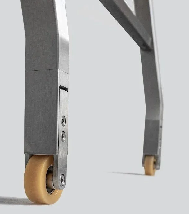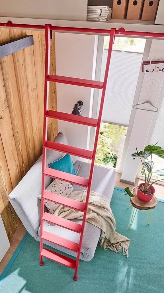 Like a collapsing telescope, MWE telescoping ladders compress for storage. Early models looked more like telescopes; modern ones hide the mechanism for a sleeker look with the same benefits.